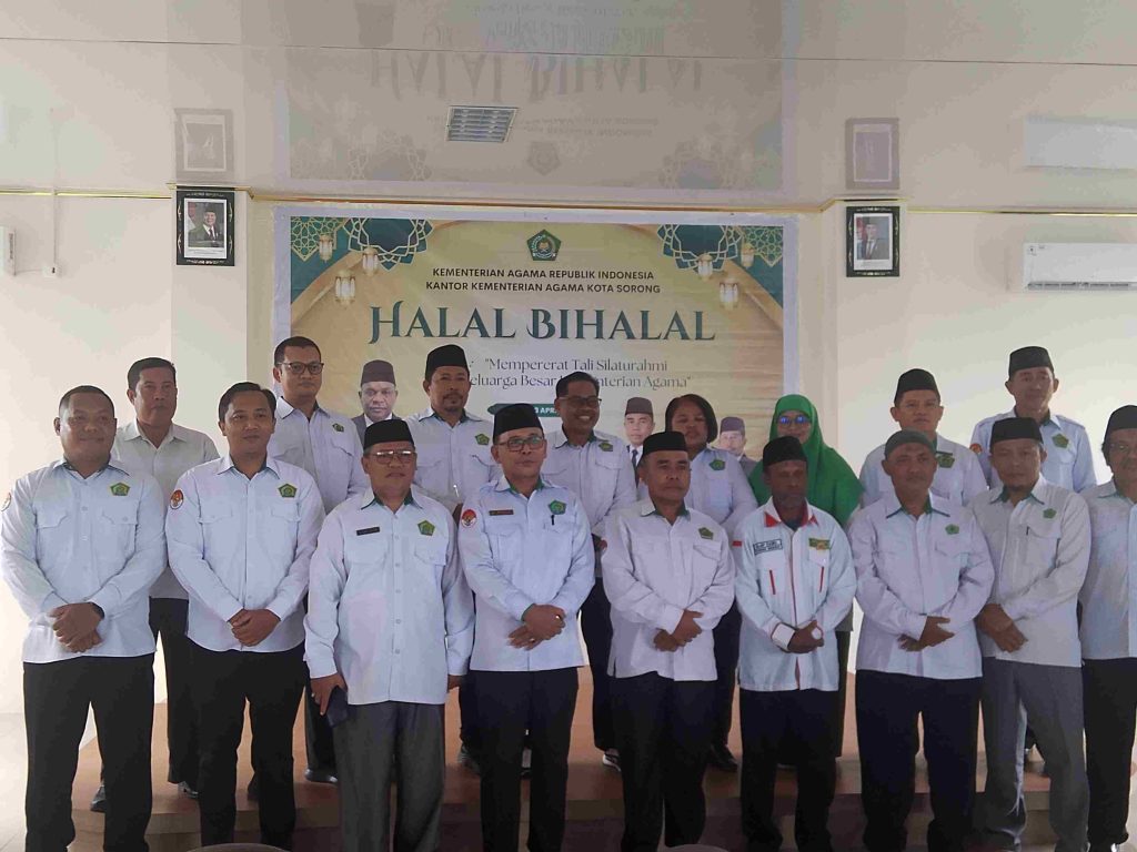 Sorong — Keluarga besar Kementerian Agama Kota Sorong menggelar kegiatan Halal Bihalal dalam rangka mempererat tali silaturahmi antarpegawai sekaligus memperkuat semangat kebersamaan dalam menjalankan tugas pelayanan kepada masyarakat.